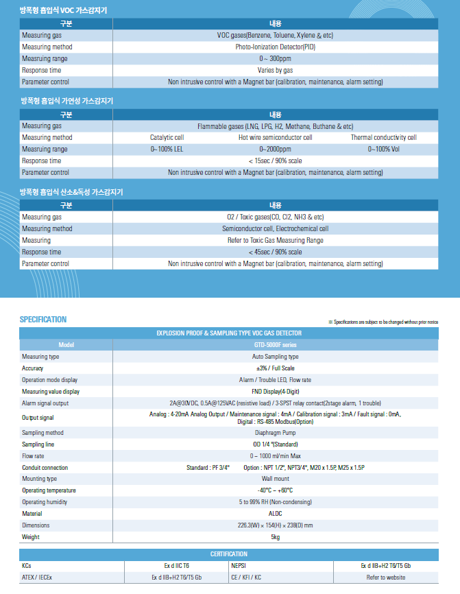 Continuous detection of flammable gases in explosion hazardous area with flame proof structure