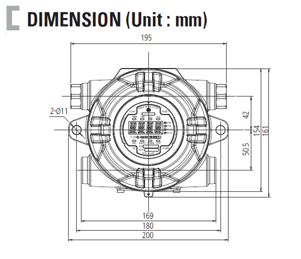 Continuous detection of toxic gases and oxygen gas in explosion hazardous area with flame proof structure